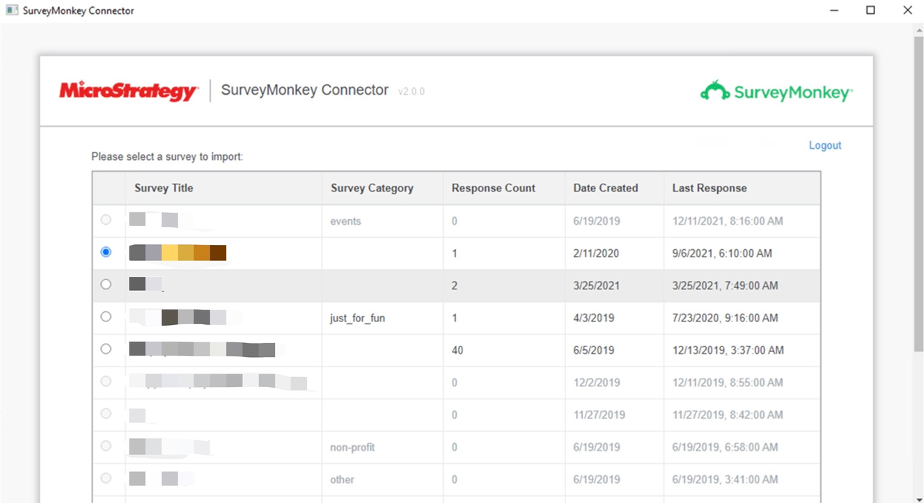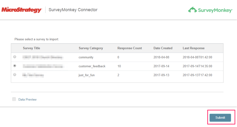 Use the SurveyMonkey Connector Before MicroStrategy Update 12