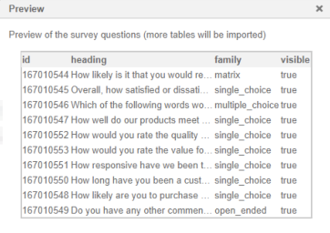 - Upon successful authorization, you are redirected to a data import page displaying a list of your surveys.