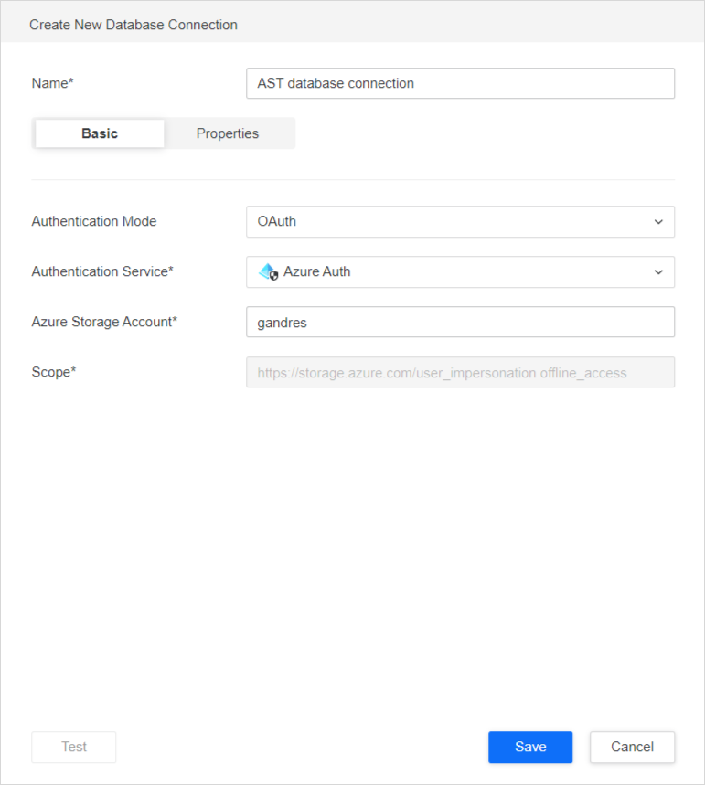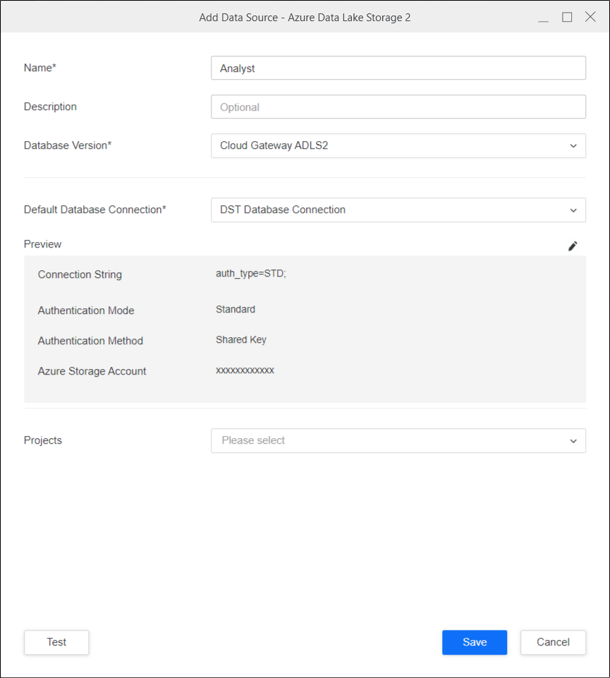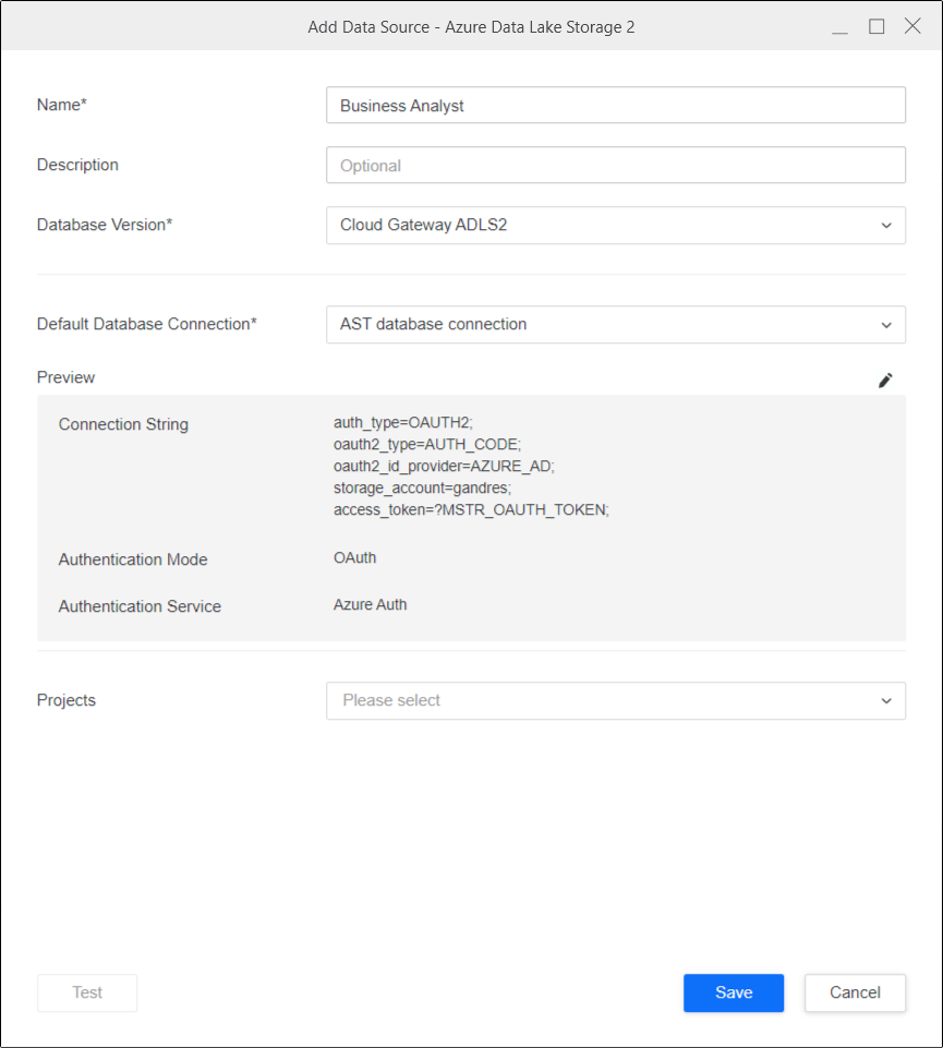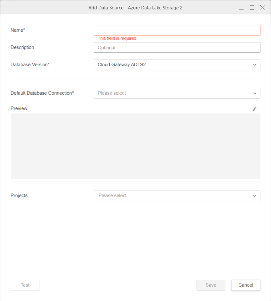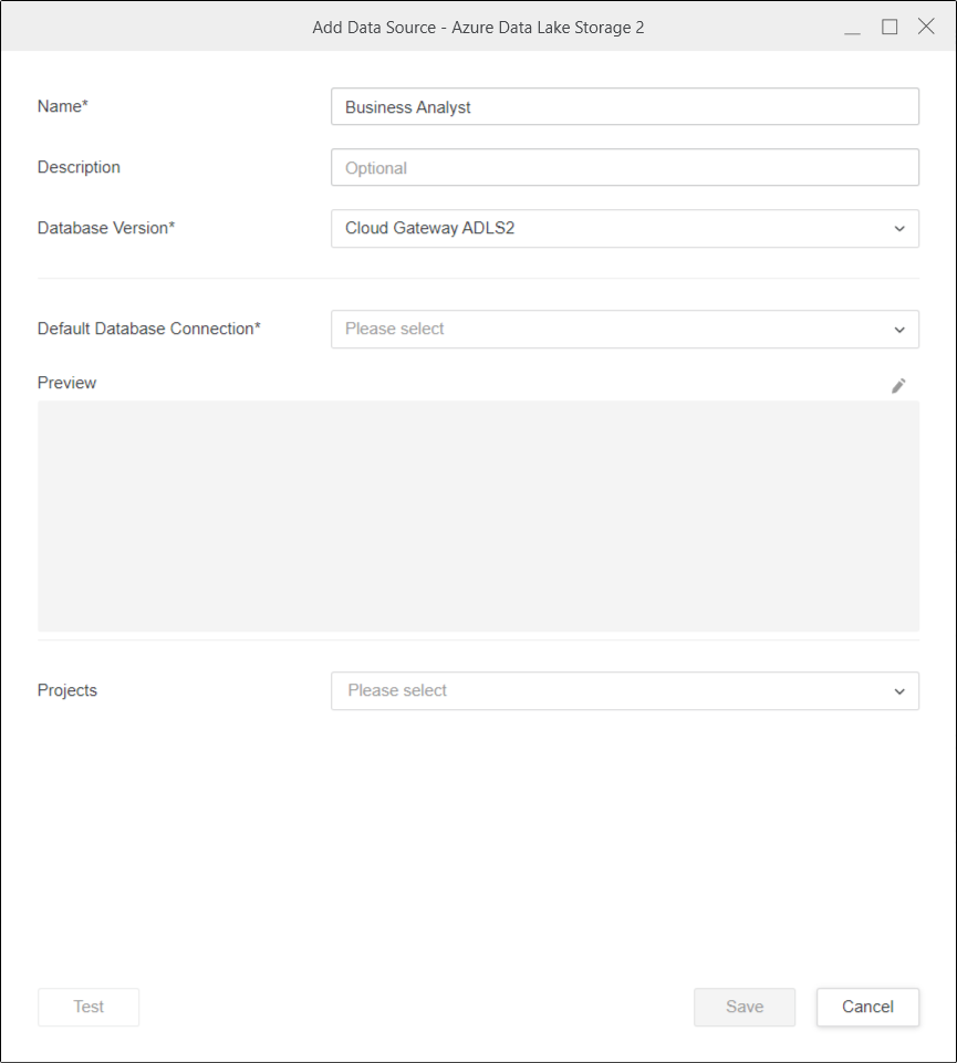 Enter the Name of the database role being created and a Description, if necessary. In Database Version, Cloud Gateway ADLS2 is selected by default.