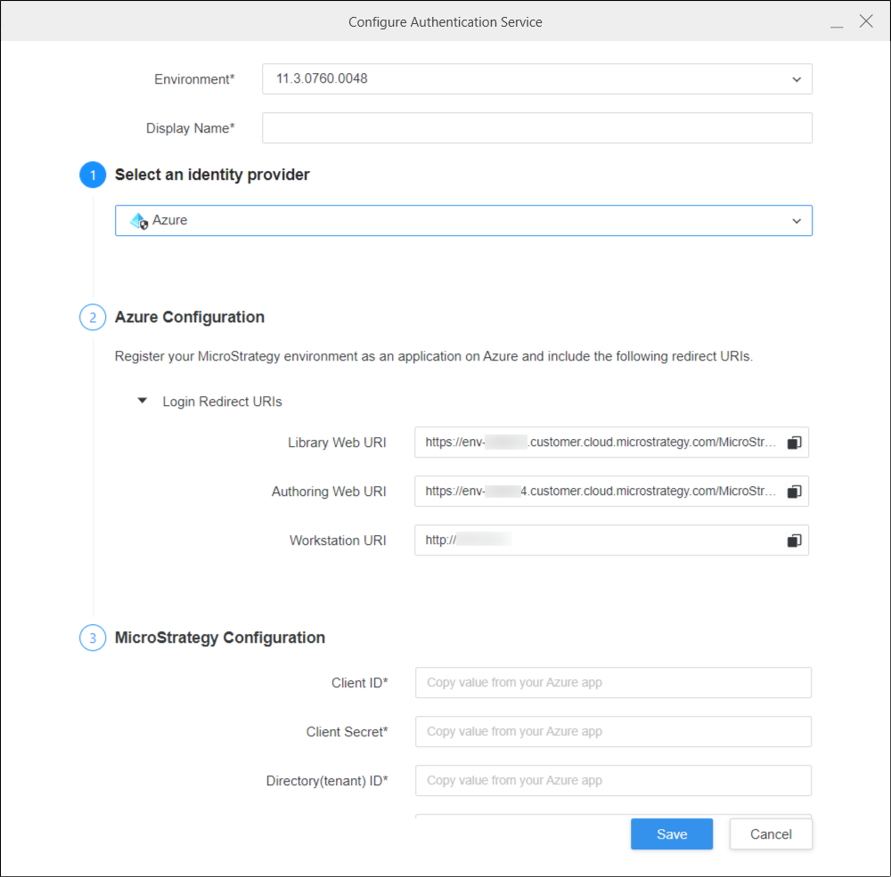 The Library Web, Authoring Web, and Workstation URIs are automatically populated. Whitelist these URIs to use the OAuth database role in Library, Web, and Workstation.