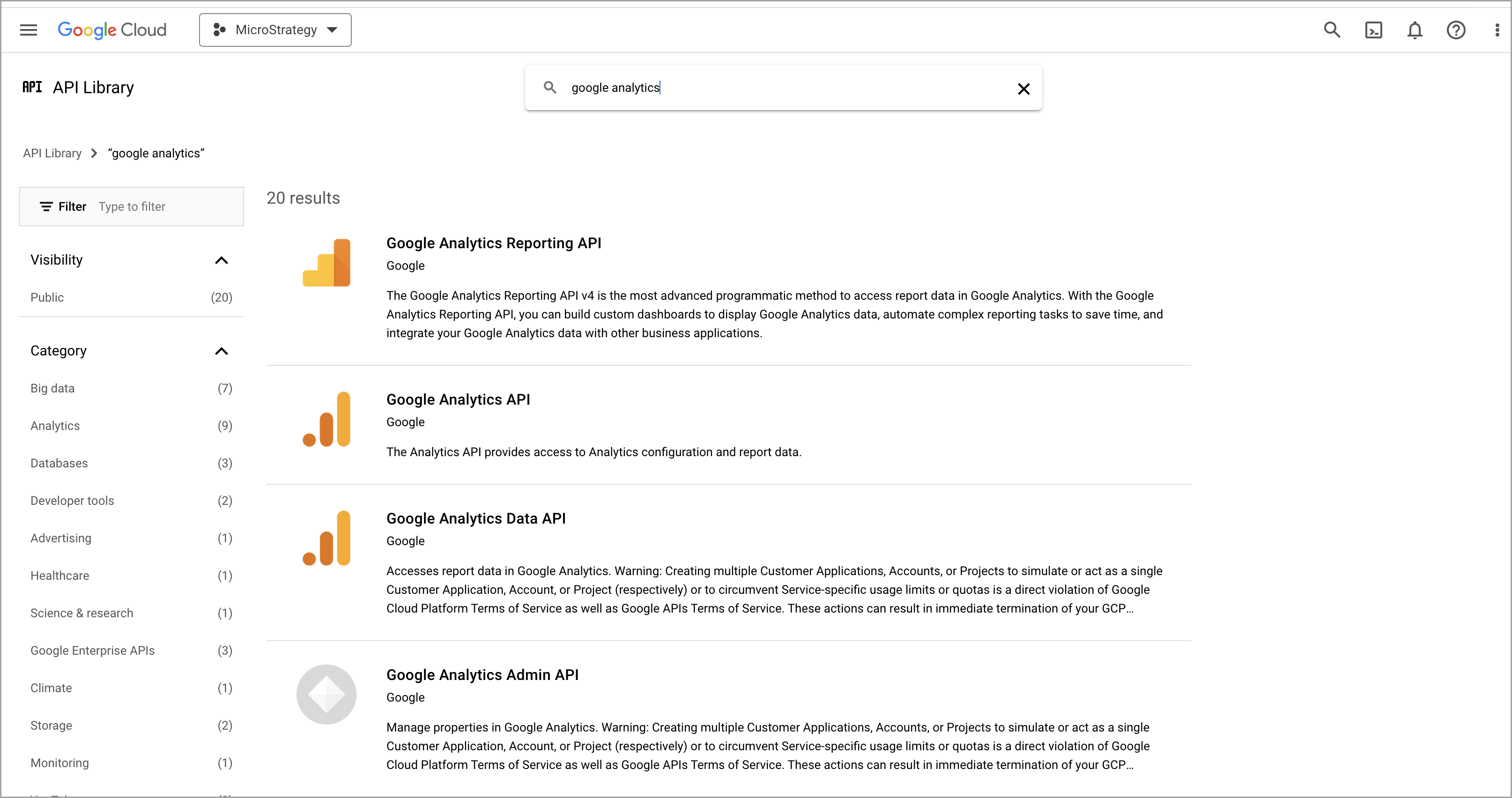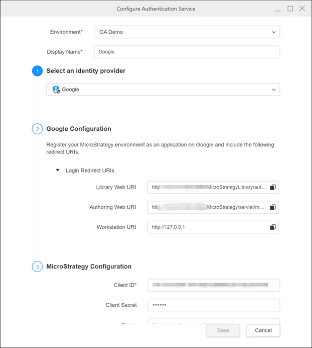 See KB483527: How to Configure Google API Data Import Connectors in MicroStrategy Desktop or Workstation for more information about how to configure the Google App.
