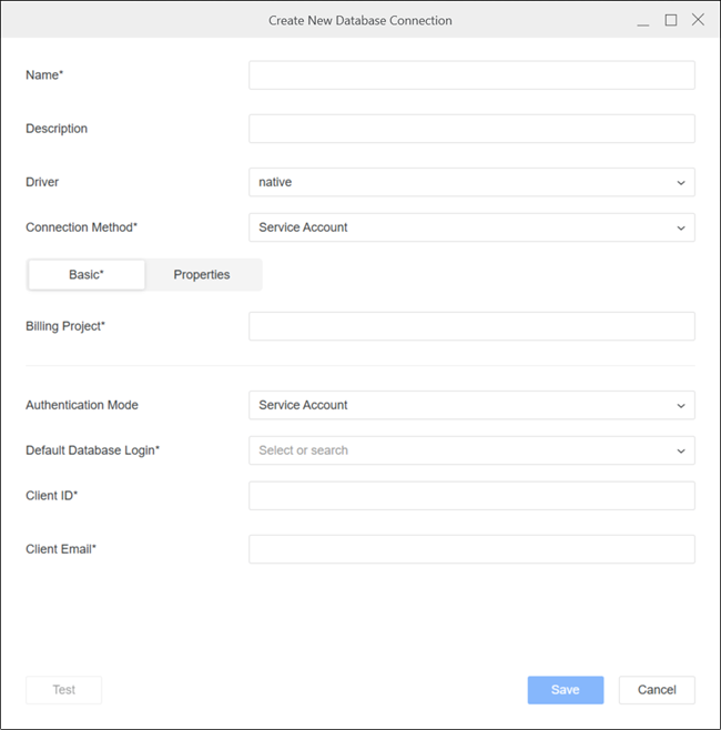 Type your Billing Project, Client ID, and Client Email.