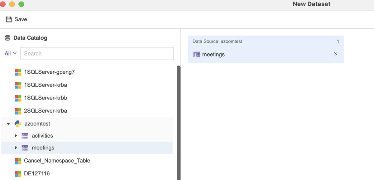 Click Save if you want to save the dataset directly.