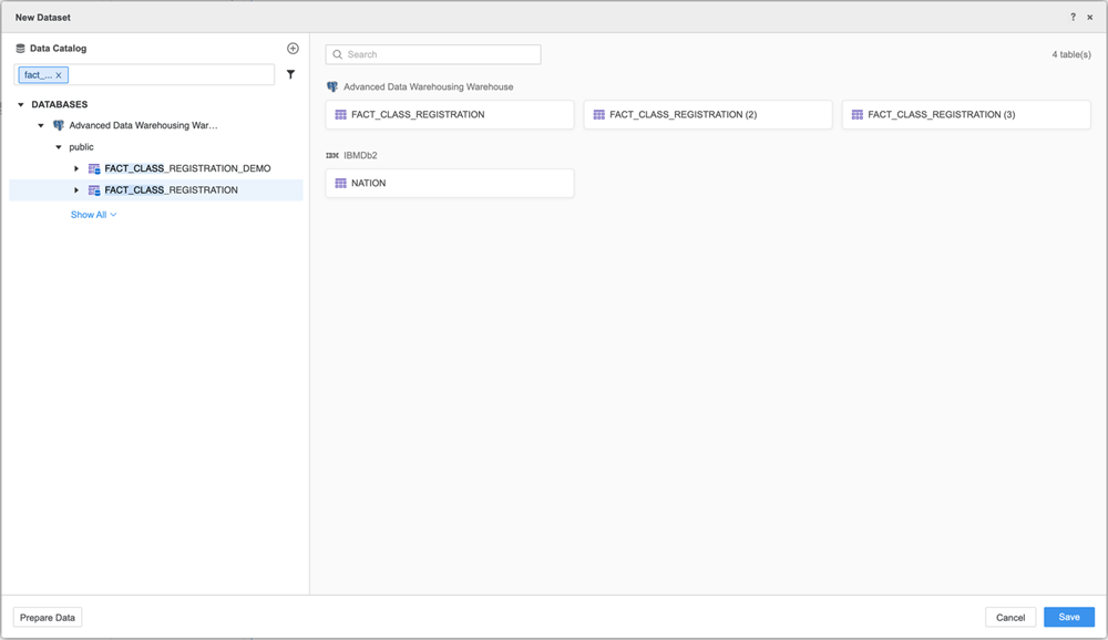 Starting in MicroStrategy ONE Update 12, you can use the improved data import experience to import data from a database by selecting tables.
