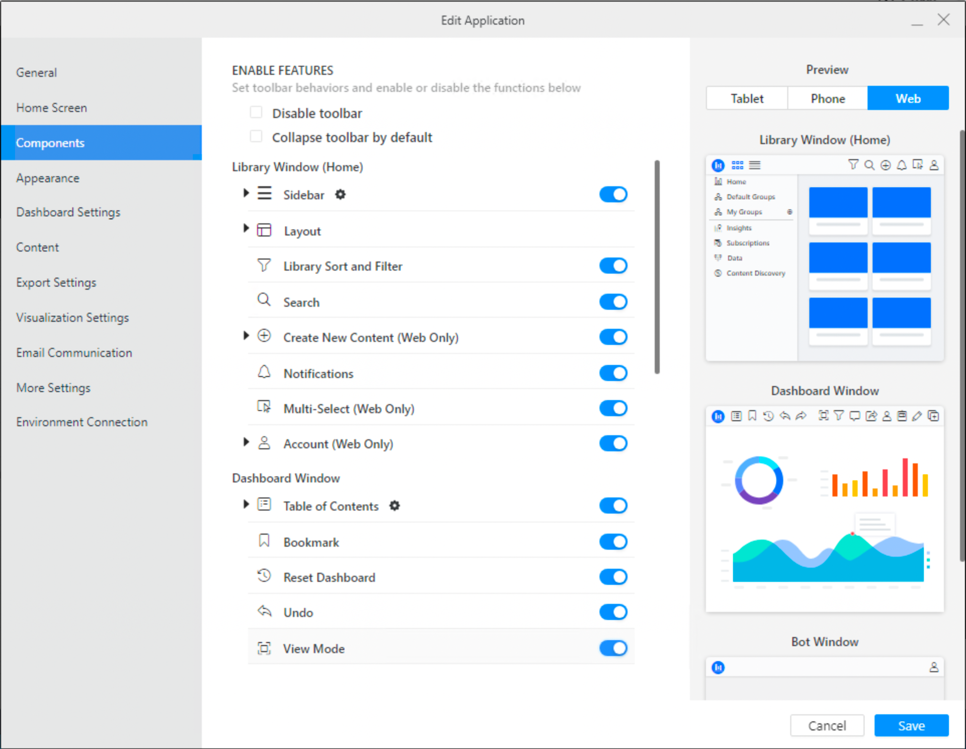 If you are upgrading to MicroStrategy ONE (June 2024) from an earlier version, if an administrator toggles on the application component, users won't see the view mode option unless the dashboard level setting is selected.
