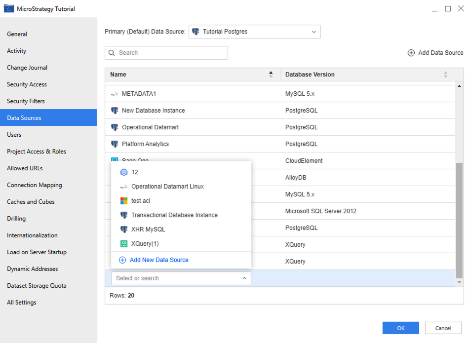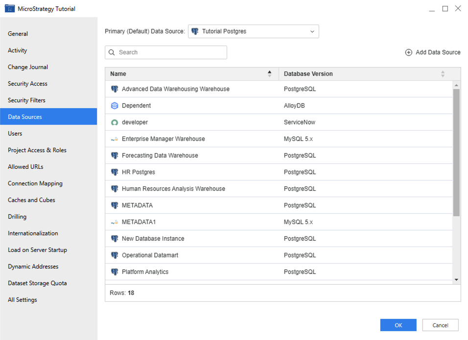 Starting in MicroStrategy ONE (March 2024), you can modify a project's primary data source, as well as add or remove a data source from a project. You must create a data source before you can access the information stored in it.