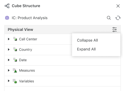 You can also choose to Collapse or Expand All cubes in the Physical View.