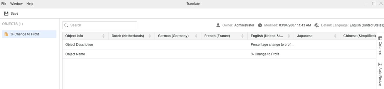 You can rename objects by right-clicking any object. In addition, you can customize translations and properties using the following options: