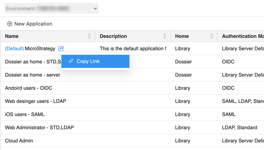 - Right-click the application and click Copy Link.