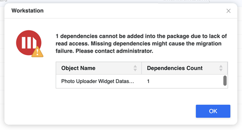 When adding dependencies, an error with a dependencies count appears when those dependencies lack the read ACL.