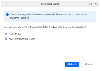MicroStrategy ONE (December 2024) adds the ability to refresh multiple cubes from the Intelligent Cube Monitor and Datasets pages.