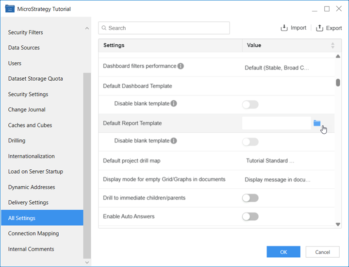 8. If the project has a default report template, you can choose to hide the out-of-the-box Blank template. To do so, enable Disable Blank Template.