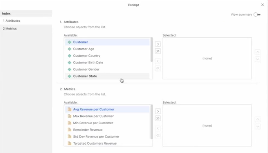 • Add object prompts to the grid so users can select the objects to display on the grid.