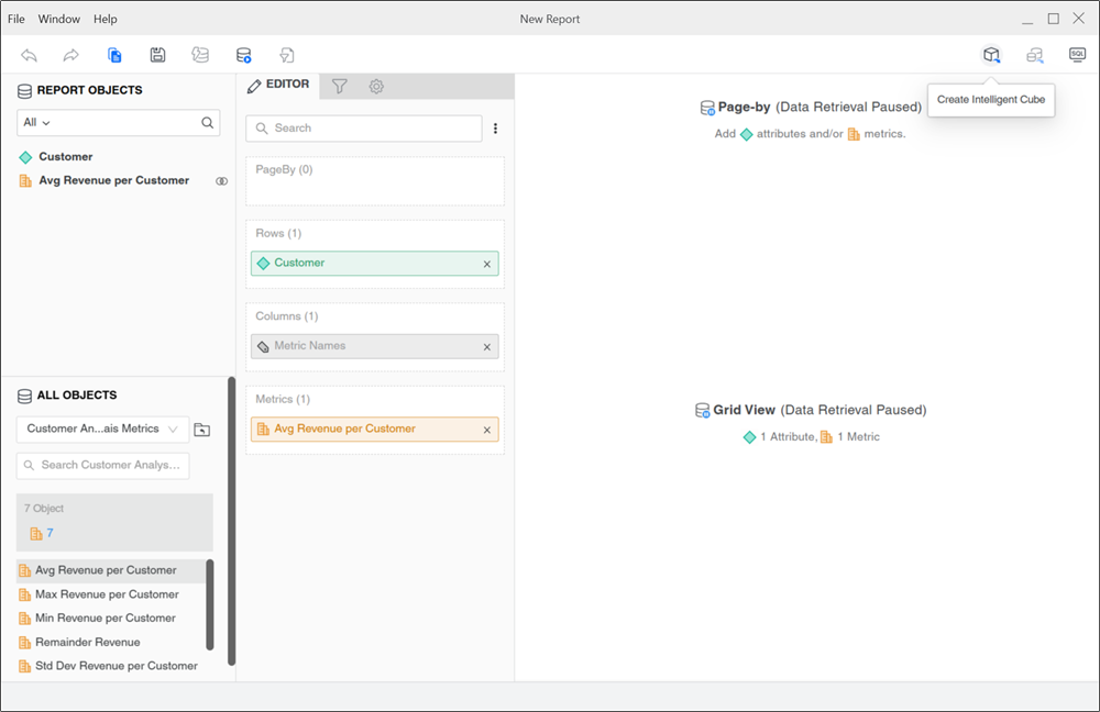 Starting in Strategy One (October 2025), you can convert a report into an Intelligent Cube in Workstation. Creating an Intelligent Cube allows you to share the report's dataset among your content.
