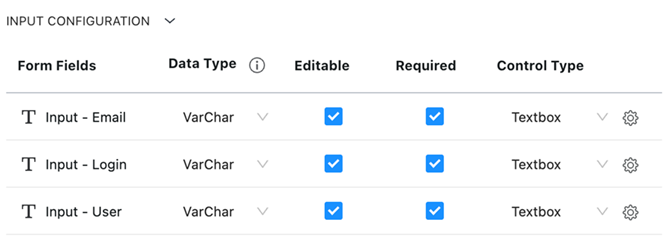Click Input Configuration to set rules and select the control type for your columns.