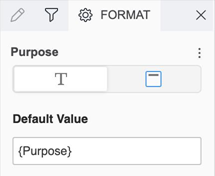 The value or dynamic value of the text box will be pre-populated as the default value of the input control, using dynamic text such as {Purpose}.