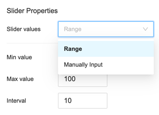 For the Slider control type, both range and manual input are supported.