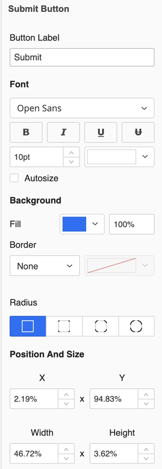 Select the Radius of the buton.