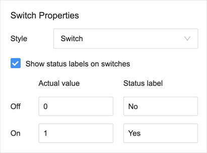 For the switch control type, both switch and checkbox styles are supported.