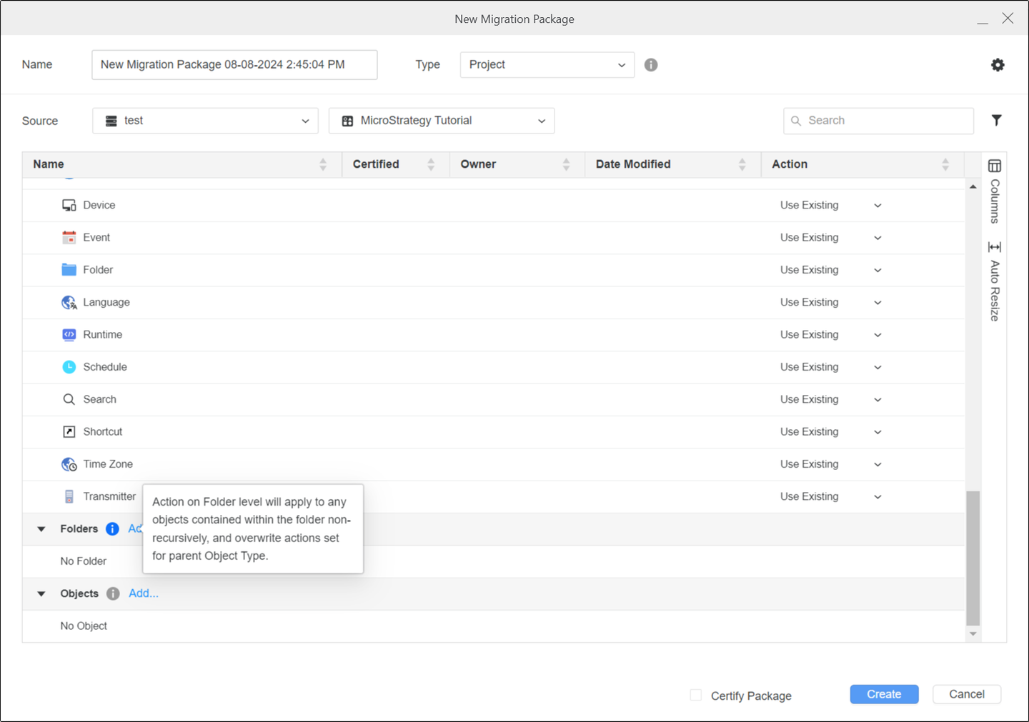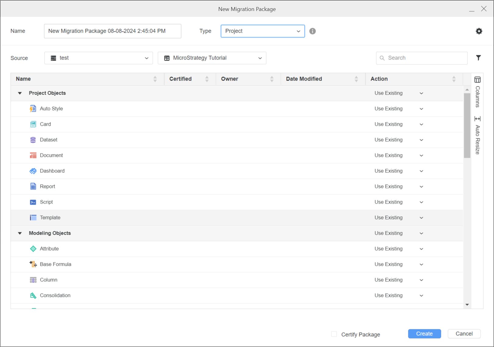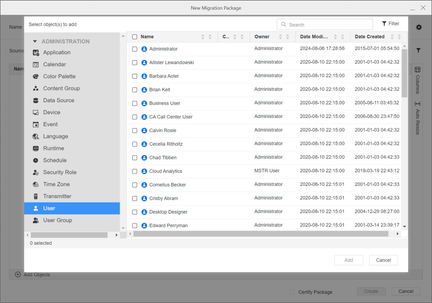 Starting in MicroStrategy ONE (September 2024), two new object types (scripts and runtime) have been introduced to the three types of Migration packages (Object, Project, and Administration packages) already available in Workstation.