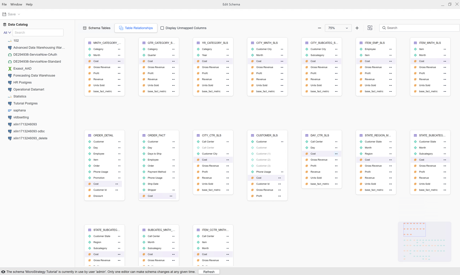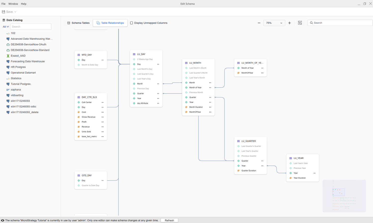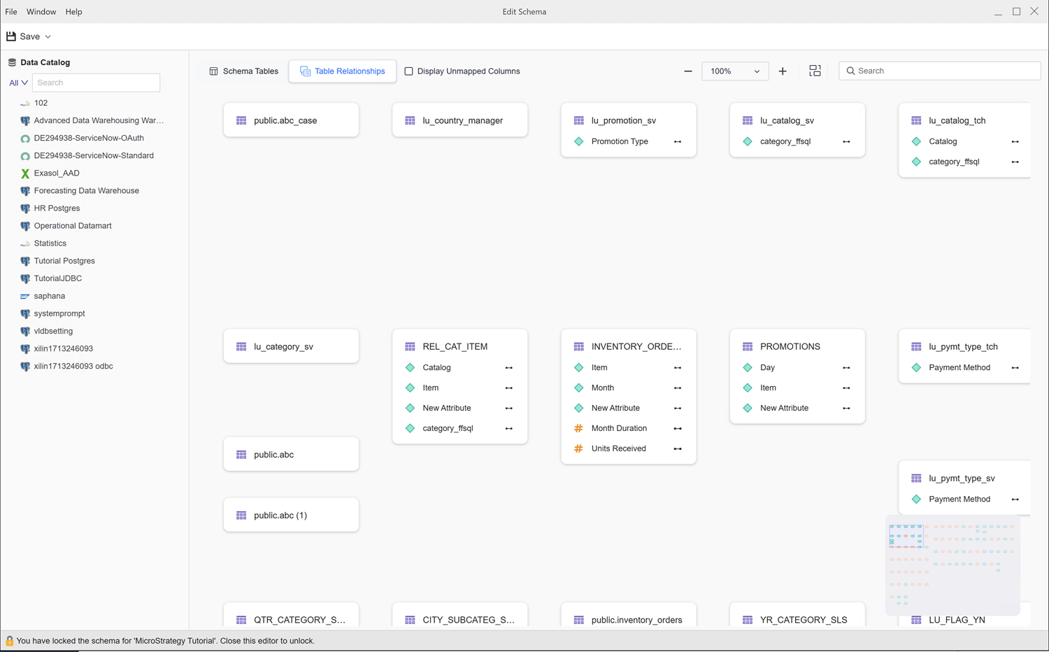 Starting in Strategy One (December 2025), you can use the Schema Editor to view table relationships in Workstation.