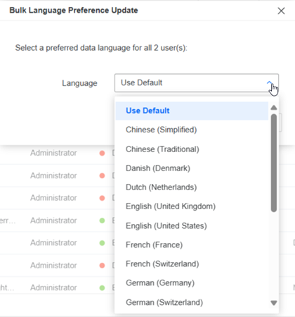 Starting in Strategy One (October 2025), you can quickly assign a language preference to multiple users at the same time. You can also assign a language preference to a user group. When creating user groups, do not include the same user who has a default language setting in more than one group that have different language preferences to avoid unexpected results.