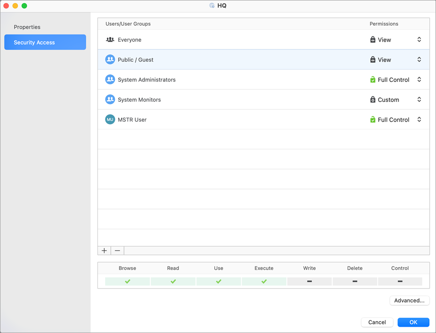 In the left pane, click Security Access.