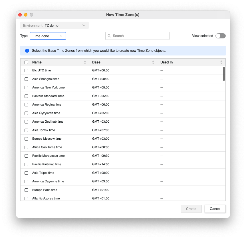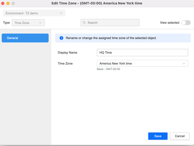 Edit Time Zone Objects
