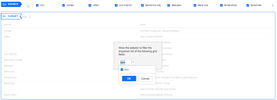 4. Select the column in the grid that you want to allow the selector to filter and click OK.