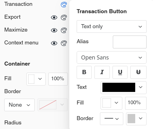 The formatting options vary based on the button. The example below is for the Transaction Button.
